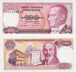 7. EMİSYON 2. TERTİP 100 LİRA F50. MEHMET AKİF ERSOY TEMALI 1984-89. ÇİL KONDİSYON.