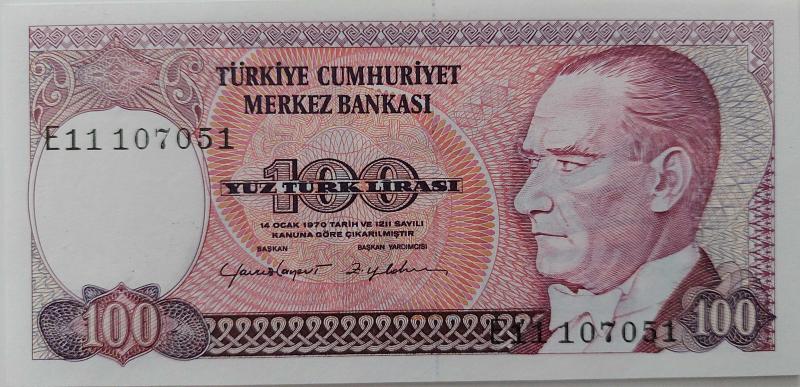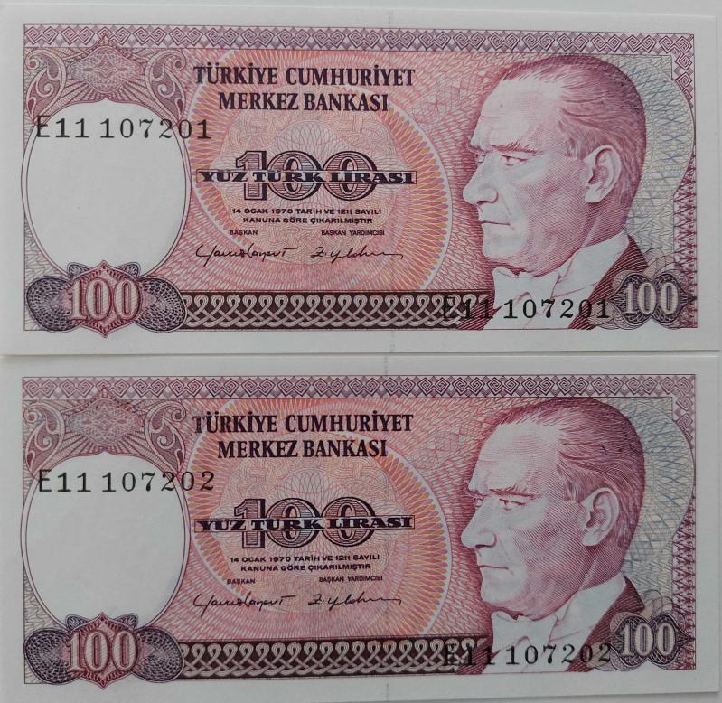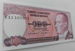 7.EMİSYON 2.TERTİP 100 TÜRK LİRASI KAĞIT PARA E11 107051 NADİR FLİGRANLI ÇİL PEK ÇIKMAZ