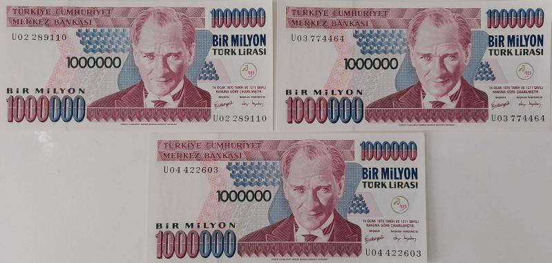 7.EMİSYON 3.TERTİP 1.000.000 TL ORİJİNAL ÜÇ ADET KAĞIT PARALARDIR. DİĞER TIRI VIRI ÜRÜNLERLE KARIŞTIRMAYINIZ. UYGUN FİYATLA SATIŞA SUNULMUŞTUR. TÜM ÜRÜNLERİMİZE BAKMANIZ MENFAATİNİZEDİR. SAYGILARIMIZLA.