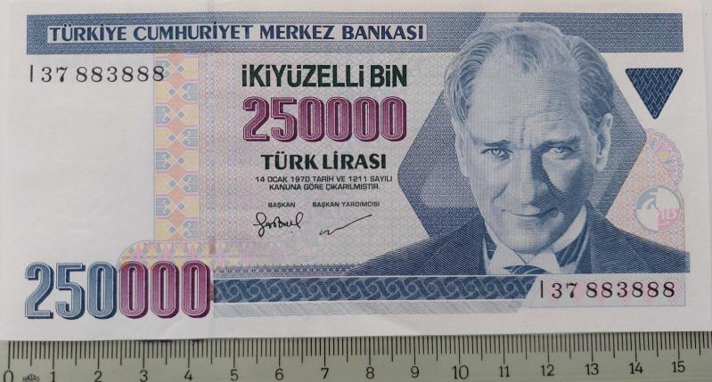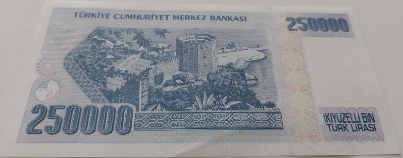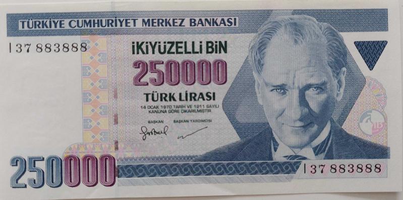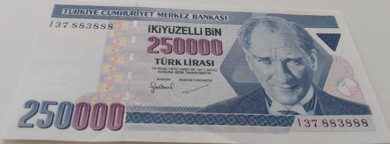 7.EMİSYON 3.TERTİP 250.000 TÜRK LİRASI ORİJİNAL KAĞIT PARA I37883888 GÜZEL NUMARA DESTE ÇİLİ