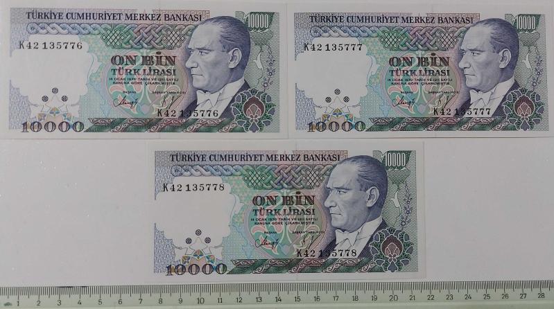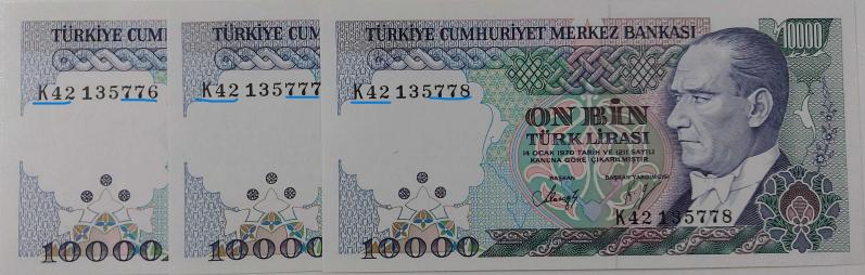 7.EMİSYON 4.TERTİP 10.000 ON BİN TÜRK LİRALARI K42135776-K42135777-K42135778 SERİ NOLU ORİJİNAL KAĞIT PARALAR ÇİL NADİR, 3 ay önce satışa sunulmuştur.