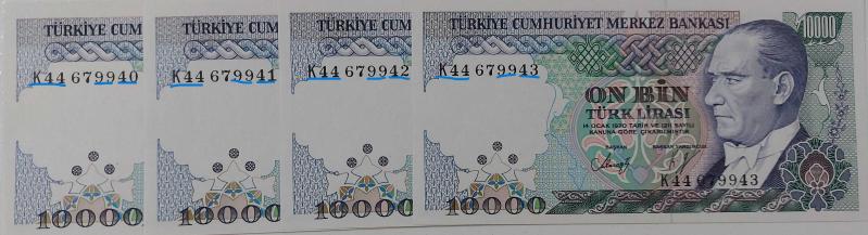 7.EMİSYON 4.TERTİP 10.000 ON BİN TÜRK LİRALARI K44679940-K44679941-K44679942-K44679943 SERİ NOLU ORİJİNAL KAĞIT PARALAR ÇİL NADİR, 3 ay önce satışa sunulmuştur.