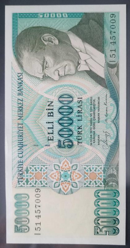 7.EMİSYON 50.000 TÜRK LİRASI SERİ: I51 457009 ÇİL başlıklı ürün, Efemera, Müzik, Sinema > Nümismatik, Para, Madalya > Kağıt Paralar > Cumhuriyet Dönemi > 7. Emisyon kategorisi altında İkinci El olarak satılmaktadır.