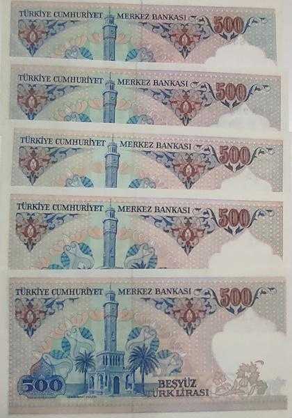7 EMİSYON 500 LİRA SERİ A-B-C-D-E HARFLERİ ÇİL E02 ÇİLALTI