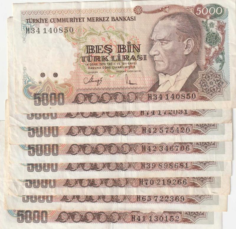 7 EMİSYON 5000 TL 8 ADET HALİYLE KONDÜSYONDA