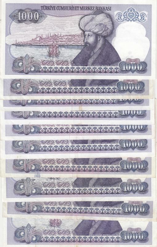 7. EMİSYON A - B - C - D - E - F -G - H - I - J SERİSİ HARFTAKIM 1000 LİRA ( 10 ADET ) / ÇOK ÇOK TEMİZ KONDİSYON