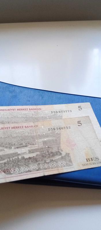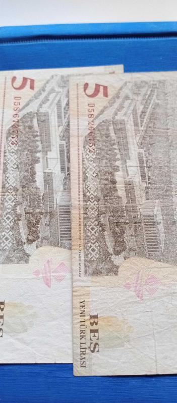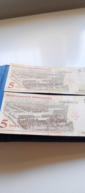 8 EMİSYON 5YTL D58 SERİ 2 ADET TEDAVÜL GÖRMÜŞ