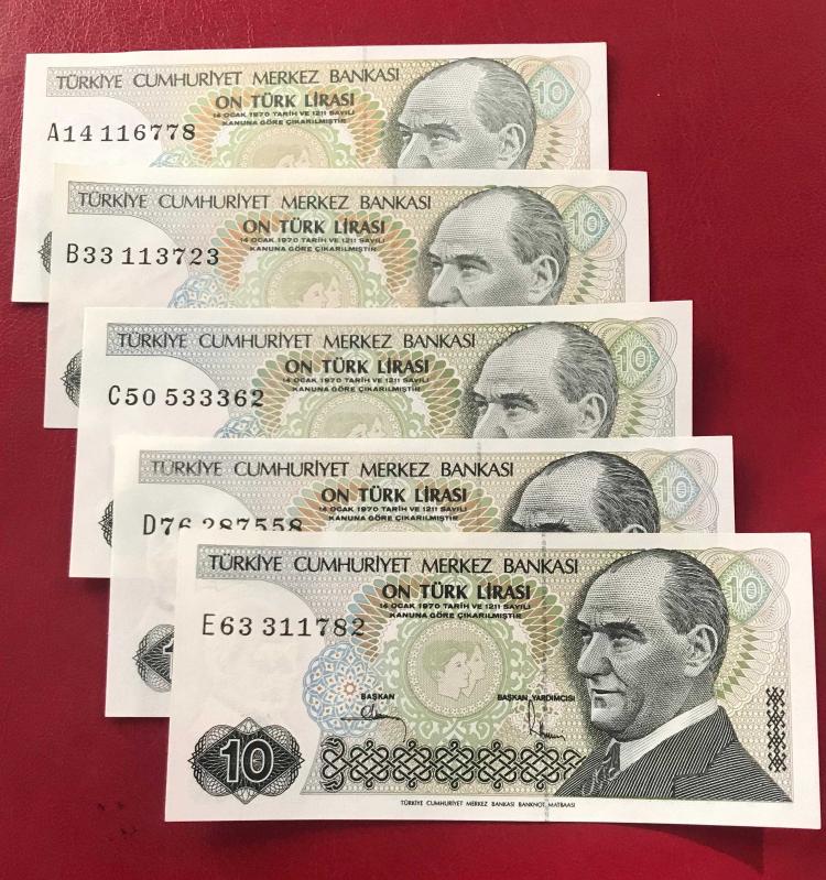 7.EMİSYON KAĞIT 10 LİRA A - B - C - D - E / SERİSİ ÇİLLLL