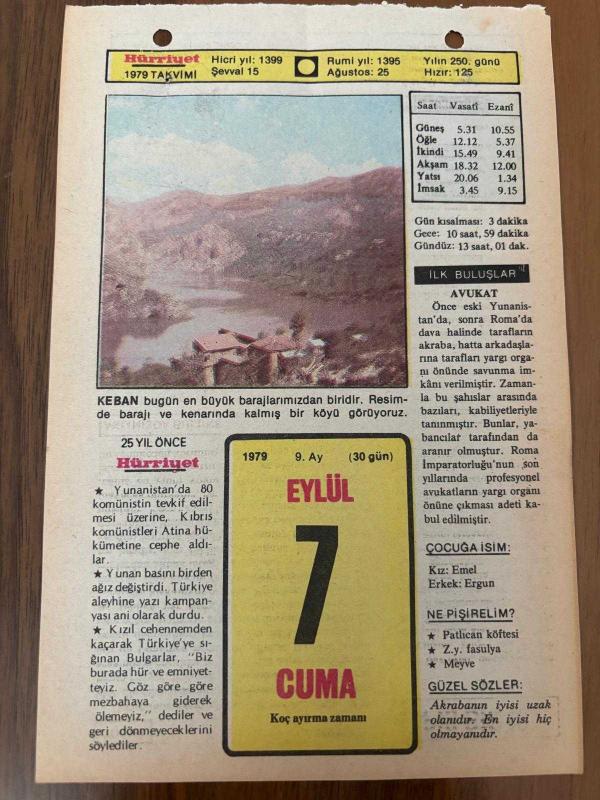 7 EYLÜL 1979 - TAKVİM YAPRAĞI - DOĞUM GÜNÜ HEDİYESİ - HÜRRİYET TAKVİMİ - PİS BİR İŞ ROMANI - Aydın ve ilçeleri Germencik'le Kuşadası'nırı, Balıkesir'in İvrindi İzmirin Torbalı; Manisa' nın Turgutlu ilçelerinin "Kurtuluş Günü', en son 8 ay önce güncellenmiştir.