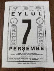 7 EYLÜL 2006 - TAKVİM YAPRAĞI - DOĞUM GÜNÜ HEDİYESİ - BÜYÜK SAATLİ MAARİF TAKVİMİ - HZ.MUHAMMED - BERAT KANDİLİ - FUAT KORAY - AYDIN,KASABA,TEPEKÖY VE KUŞADASI ORDUMUZ TARAFINDAN KURTARILDI - İSTANBUL VE ANKARA RADYOLARI BİRLEŞTİRİLDİ başlıklı ürün, Efemera, Müzik, Sinema > Belge ve Evraklar > Takvimler kategorisi altında İkinci El olarak satılmaktadır.