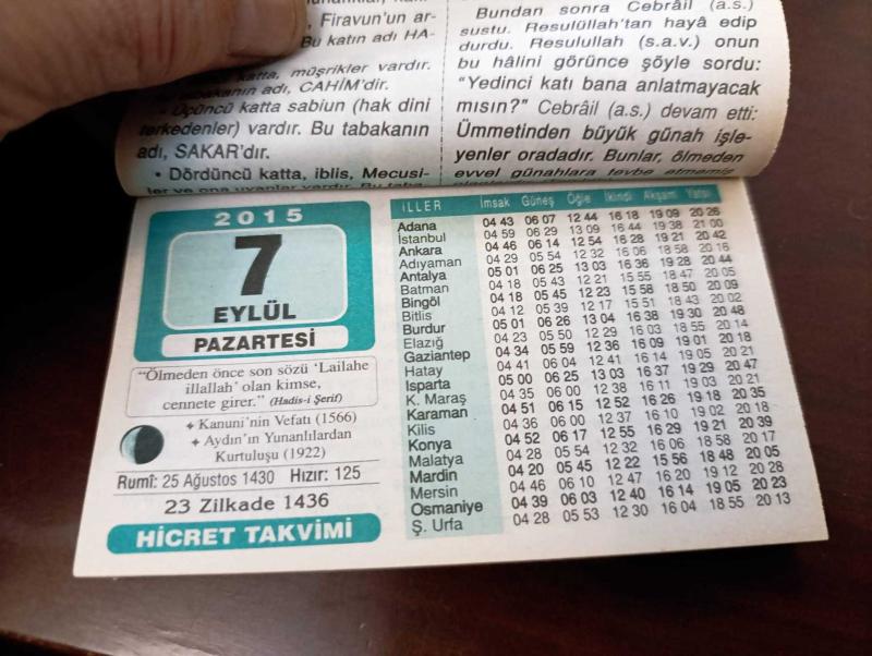 7 EYLÜL 2015 TAKVİM YAPRAĞI, 6 ay önce satışa sunulmuştur.