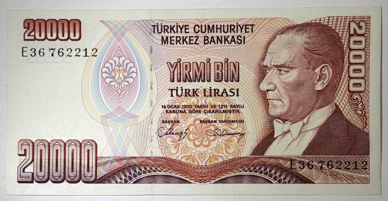 7. Emisyon 1. Tertip olarak basılmış, 20000 Türk Lirası banknot koleksiyonluk niteliktedir. Genel görünümü oldukça temiz olup, dolaşım izi yok denecek seviyededir. Renkler canlı, baskı detayları net ve yazılar belirgindir. Kağıt formu diri ve düzgün durumdadır. 7. Emisyon serisini tamamlamak isteyen koleksiyonerler için çil kondisyonda güzel bir örnektir. Fotoğraflar ürünün birebir kendisine aittir. Emisyon: 7. Emisyon Tertip: 1. Tertip Nominal Değer: 20000 Türk Lirası Seri / Numara: E36 762212 Kondisyon: Çil Durum: Orijinal – Koleksiyonluk