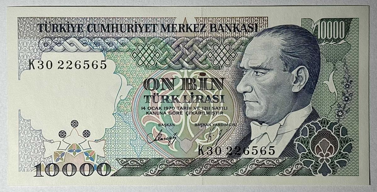 7. Emisyon 10 Bin Türk Lirası K30 226565 Çil Kondisyonda Filigranlı Ayak Koleksiyonluk Eski Para, en son dün güncellenmiştir.