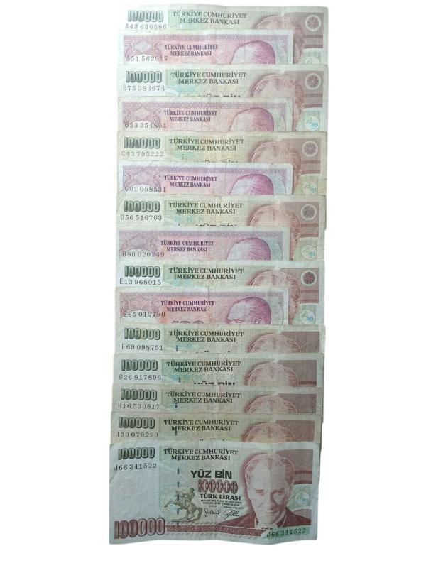 7. Emisyon 100.000 ve 100 Türk Lirası Harf Serili 15 Adet Koleksiyon Kağıt Para.