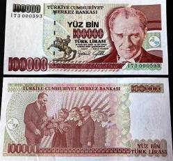 7.Emisyon 100 Bin Türk Lirası Çil ALTI I73 000593 İLK BİN PARASI (X-35)
