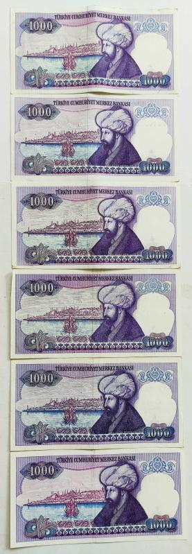 E-F-G-H-I-J Harf Sıralı 1000 Liralar 6 Adet..