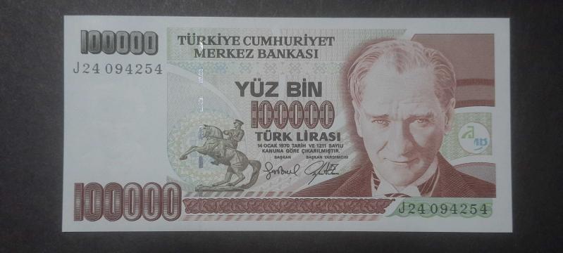 7.Emisyon 100000 Lira ( 100bin Türk Lirası / Yüz Bin) -J24 - Atatürk'e çiçek sunan çocuk görselli arka yüz 100.000 Türk Lirası, en son 17 gün önce güncellenmiştir.