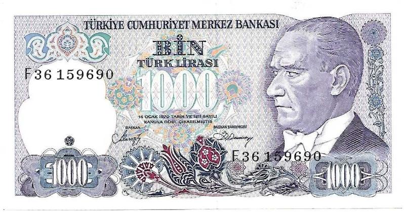 7.Emisyon / 2.Tertip / 1.000 Lira Seri Numarası : F 36 159690 Kondisyon : (ÇA) Çil Altı Puanlama : 10,00 / 9.75 NOT : -