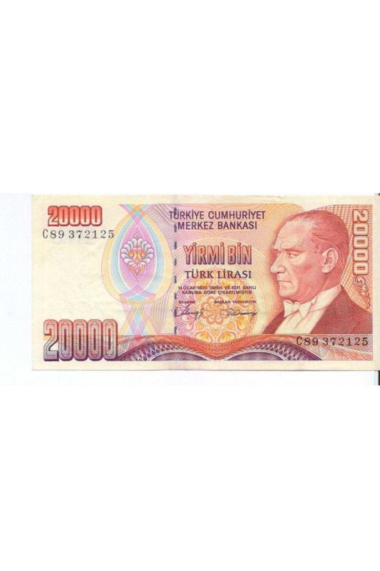 7; Emisyon 20; 000 lira kağıt para çil kondisyon