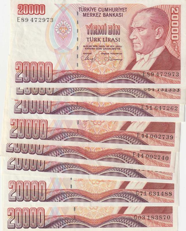 7.Emisyon 20.000 TL Lotu 8 Adet, ÇİLALTI başlıklı ürün, Efemera, Müzik, Sinema > Nümismatik, Para, Madalya > Kağıt Paralar > Cumhuriyet Dönemi > 7. Emisyon kategorisi altında İkinci El olarak satılmaktadır.
