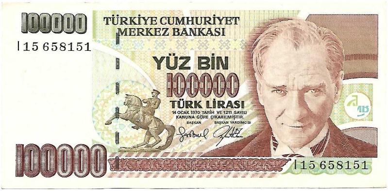 7.Emisyon / 3.Tertip / 100.000 Lira Seri Numarası : I 15 658151 Kondisyon : (ÇÇT) Çok Çok Temiz Puanlama : 10,00 / 8.75 NOT : Paranın ön yüz sol tarafında katlama izi mevcut.