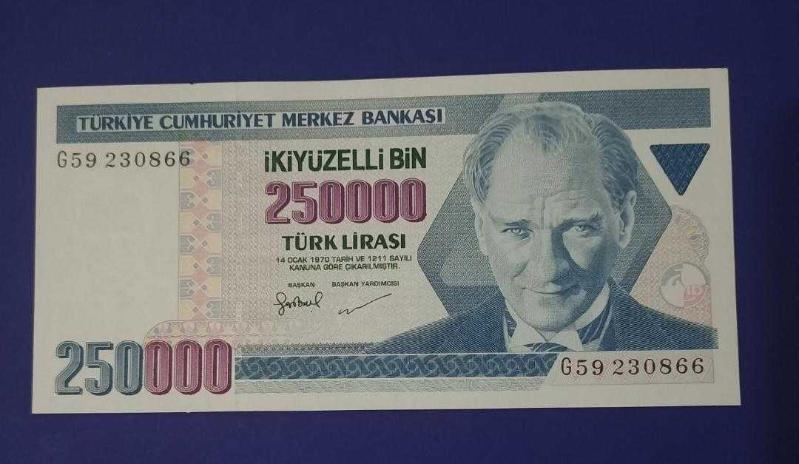 7 Emisyon 3 tertip 250 Bin Lira çil G 59 seri 1998-2006), 1 yıl önce satışa sunulmuştur.