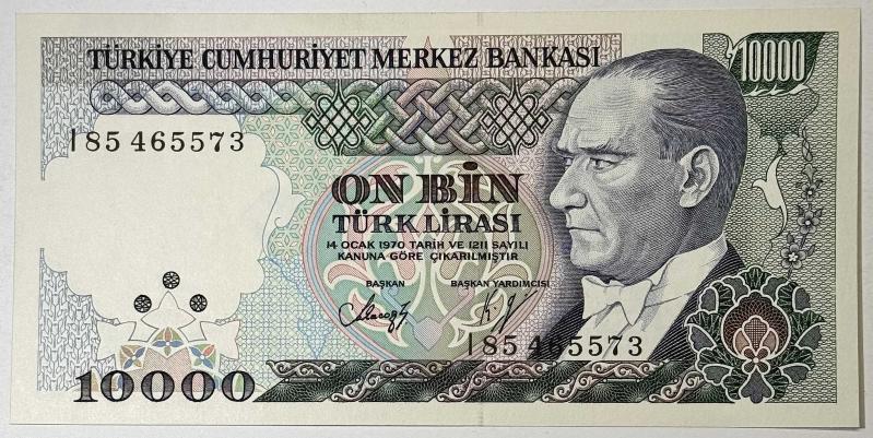 7. Emisyon 4. Tertip olarak basılmış, 10000 Türk Lirası banknot koleksiyonluk niteliktedir. Genel görünümü oldukça temiz olup, dolaşım izi yok denecek seviyededir. Renkler canlı, baskı detayları net ve yazılar belirgindir. Kağıt formu diri ve düzgün durumdadır. 7. Emisyon serisini tamamlamak isteyen koleksiyonerler için çil kondisyonda güzel bir örnektir. Fotoğraflar ürünün birebir kendisine aittir. Emisyon: 7. Emisyon Tertip: 4. Tertip Nominal Değer: 10000 Türk Lirası Seri / Numara: I85 465573 Kondisyon: Çil Durum: Orijinal – Koleksiyonluk