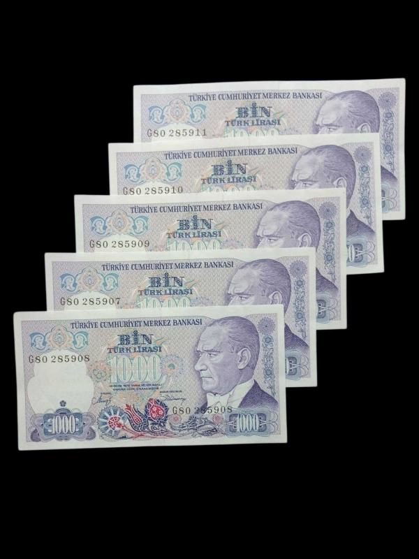 7.Emisyon 5 Adet Sıralı 1000 Türk Lirası Kağıt Koleksiyon Para . Numismatik, Antikalar, Hobi Hediye