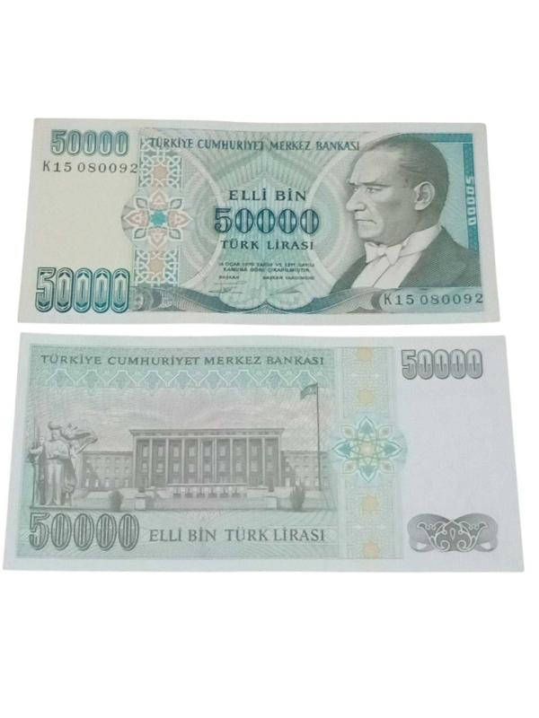 7. Emisyon 50.000 Türk Lirası Mevlana Koleksiyon Kağıt Para. Cumhuriyet Dönemi Para.