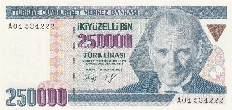 7. Emisyon A04 Serisi 250.000 Türk Lirası Güzel Numaralı