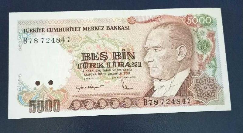 7 Emisyon B 78 Seri 5000 Lira Çil Büyük Mevlana