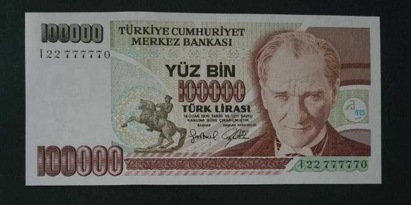 7 Emisyon I 22 777770 Radar Seri no 100 Bin Lira Çil