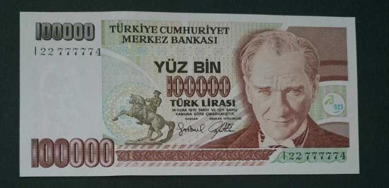 7 Emisyon I 22 777774 Radar Seri no 100 Bin Lira Çil