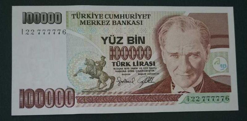 7 Emisyon I 22 777776 Radar Seri no 100 Bin Lira Çil