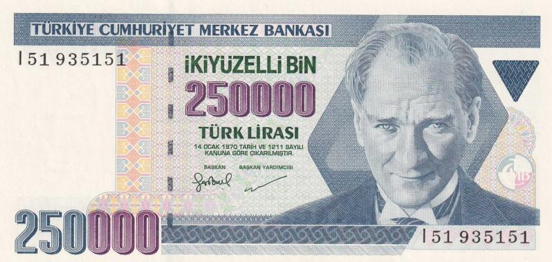 7. Emisyon I51 Serisi 250.000 Türk Lirası Güzel Numaralı