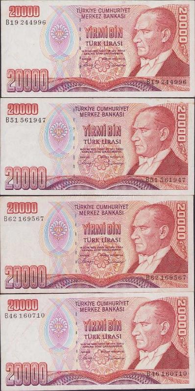 7.Ems. 20.000 Lira Seri B19/B46/B51/B62 4 Adet ÇÇT+++ başlıklı ürün, Efemera, Müzik, Sinema > Nümismatik, Para, Madalya > Kağıt Paralar > Cumhuriyet Dönemi > 7. Emisyon kategorisi altında İkinci El olarak satılmaktadır.