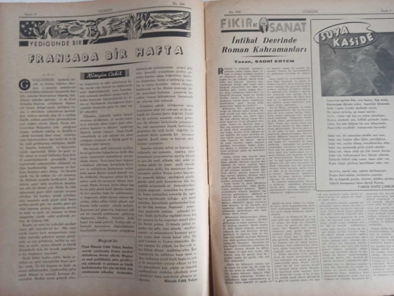 7 Gün Haftalık Aktüalite Sinema Tiyatro Müzik ve Magazin Dergisi - 12 Mart 1940 - Sene 8 Sayı 366 - İnsanların Benimsediği Tek Mevsim: İlkbahar - Yedigünde Bir Fransa'da Bir Hafta - Hüseyin Cahit - Fikir ve Sanat - İntikal Devrinde Roman Kahramanları - Sadri Ertem - Suya Kaside - Faruk Nafiz Çamlıbel - Renkli Fotoğraf - Dr. Seyfettin Yazgan - Ev Doktoru Diyor Ki - Soğuk ve Sıhhat - Dr. Nuri Ergene - Ev Doktoru Ansiklopedisi - Cam Deyip Geçmeyin - Düşünceler - Bozuklar Ölçüsü - İbrahim Alaettin - Bize Gelen Eserler - Ana - Hokkabazlar - Burhan Belge'yi Dinlediniz mi? - Ertuğrul Şevket - Tayyareci Olmak İstiyorum - Bugünkü Tekamül - Gaz Maskesi Satıyorum - Bir Fransız Hikayesi - Edebiyatçılarımızı Tanıyalım - Meliha Avni Sözen - Behçer Yazar - Güzel Şiirler - Elli Türk Büyüğü - Mühim Bir Eser - Ateş Gecesi - Altıncı Balkan Şampiyonasından Sonra Alafrangayı Tamamen Kaldırmasak da Olur, Fakat Serbest Güreşlere Acele Başlamalıyız - Eşref Şefik fotoğraf ve haberi - Tam Takım Dergi Yıpranma, sararmalar, kupon kesiği ve yırtılmalar zamana bağlı olarak görülebilir