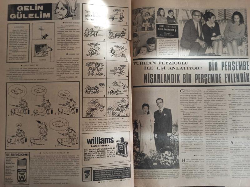 7 Gün Haftalık Aktüalite Sinema Tiyatro Müzik ve Magazin Dergisi - Öteden Beriden - Papatya Falı - Rüyalar ve Şiirler İşte Benim Dünyam - Pervin Par'ın şiir yazdığını ve hep aynı rüyaları gördüğünü biliyor muydunuz? - Hem hafız hem müezzin hem de antrenör - Ev Doktoru - Rauf Sezer - Rahim Kanseri - 5 Mayıs 1929'da doğan sinemamızın tanınmış oyuncularından Ayhan Işık'ın Doğum Gününü Kutluyoruz - 5 Kuruşun Hikayesi - 5 kuruş için 2.5 liralık zaman ve masraf gerekiyor - Cahit Uçuk'tan güzel bir hikaye - Sevincin böylesi - Haftanın Fotoğrafı - Kızılderililer Arasında Bir Türk - Muammer Kaylan - Gelin Gülelim - Turhan Feyzioğlu ile Eşi Anlatıyor: Bir Perşembe Nişanlandık Bir Perşembe Evlendik - Asi Gençler Fotoromanı - Bilmece Bulmaca - Ulvi Okar - Uçağın Hatası Nerede? - Pop Sabun Reklamı - Figen Han - Güzel Ama İki Küçük Kusuru Var - Feza Çağının İnsanı - Stephan Boyd - Shirley Mac Laine - Raquel Welch fotoğraf ve haberi - Derginin Sayfaları Tamdır Kapak Kısmında Kısmi Yırtık Mevcuttur Yıpranma, sararmalar, kupon kesiği ve yırtılmalar zamana bağlı olarak görülebilir