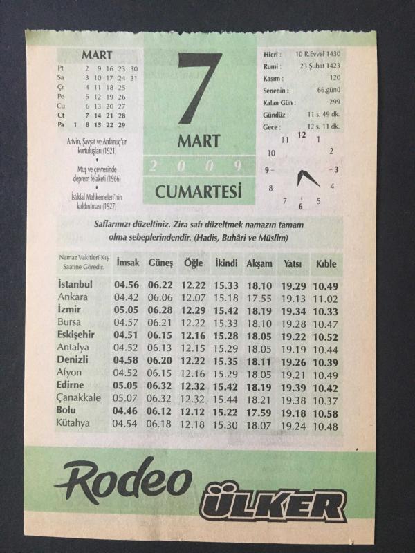 7 MART 2009 -TAKVİM YAPRAĞI-DOĞUM GÜNÜ HEDİYESİ-ÜLKER TAKVİMİ,ARDUNÇ ŞAVŞAT VE ARDUNÇUN KURTULUŞLARI,1921,MUŞTA DEPREM FELAKETİ, 1966,İSTİKLAL MAHKEMELERİNİN KALDIRILMASI 1927,HAYATIN GAYESİ NEDİR,ÇOCUĞUNUZUN İSMİ,MİLLİ TAKIMIN SAYI KRALI,PROFİTEROL, en son 8 ay önce güncellenmiştir.