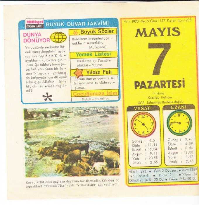 7 MAYIS 1973 MİLLİYET TAKVİM YAPRAĞI, en son 3 ay önce güncellenmiştir.