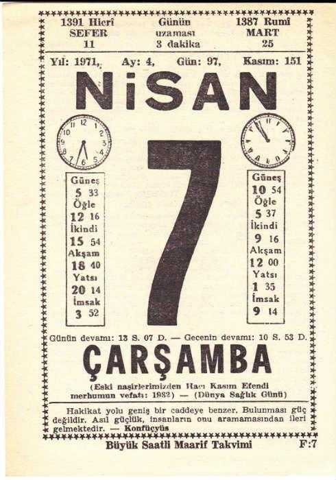 7 NİSAN 1971 SAATLİ MAARİF TAKVİMİ YAPRAĞI, en son 1 yıl önce güncellenmiştir.