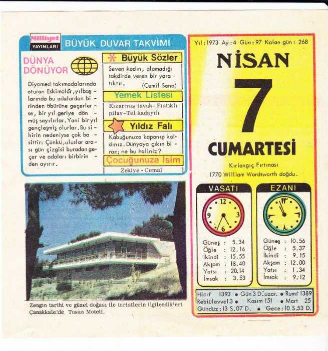 7 NİSAN 1973 MİLLİYET DUVAR TAKVİMİ, en son 1 yıl önce güncellenmiştir.