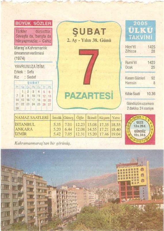 7 ŞUBAT 2005 ÜLKÜ TAKVİM YAPRAĞI, en son 1 yıl önce güncellenmiştir.