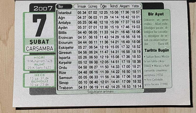 Orijinal takvim yaprağıdır.