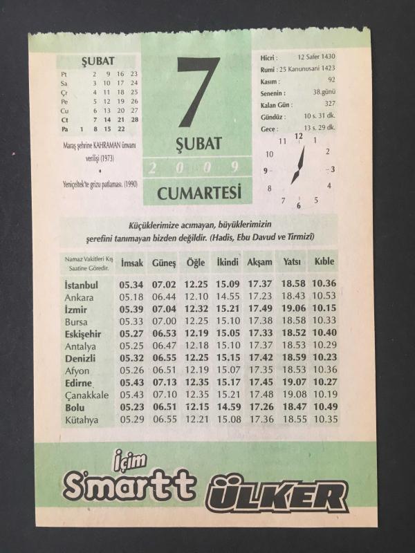 7 ŞUBAT 2009-TAKVİM YAPRAĞI-DOĞUM GÜNÜ HEDİYESİ-ÜLKER TAKVİMİ,MARAŞ ŞEHRİNE KARAMAN ÜNVANI VERİLİŞİ 1973,YENİÇELTEKTE GİRUZU PATLAMASI 1990,TÜKETİM,BUNUN İÇİN Mİ,ÇOCUĞUNUZUN İSMİ ETLİ PAZI DOLMASI, en son 8 ay önce güncellenmiştir.