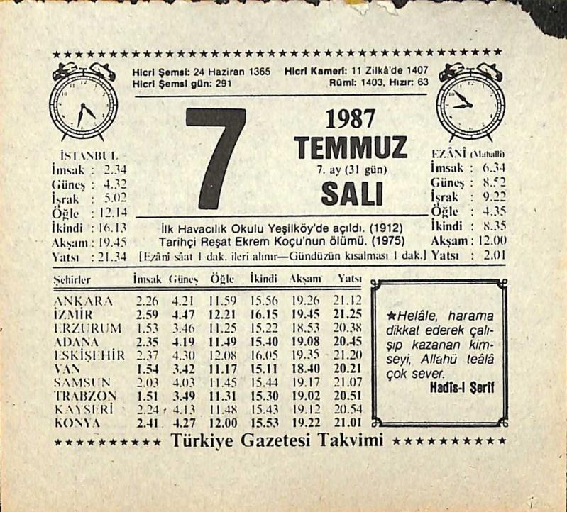 7 Temmuz 1987 Takvim Yaprağı - Doğum Günü Hediyesi EFMN13819, en son 22 gün önce güncellenmiştir.