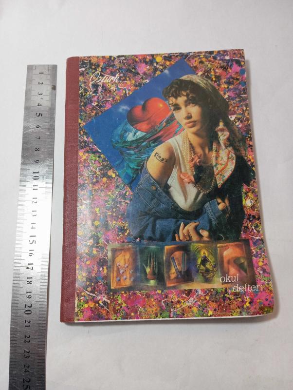 70-80 ler kadın görselli okul defteri başlıklı antika/koleksiyon objesi Türkiye menşe’lidir. 1950-1999 arası dönemine aittir.