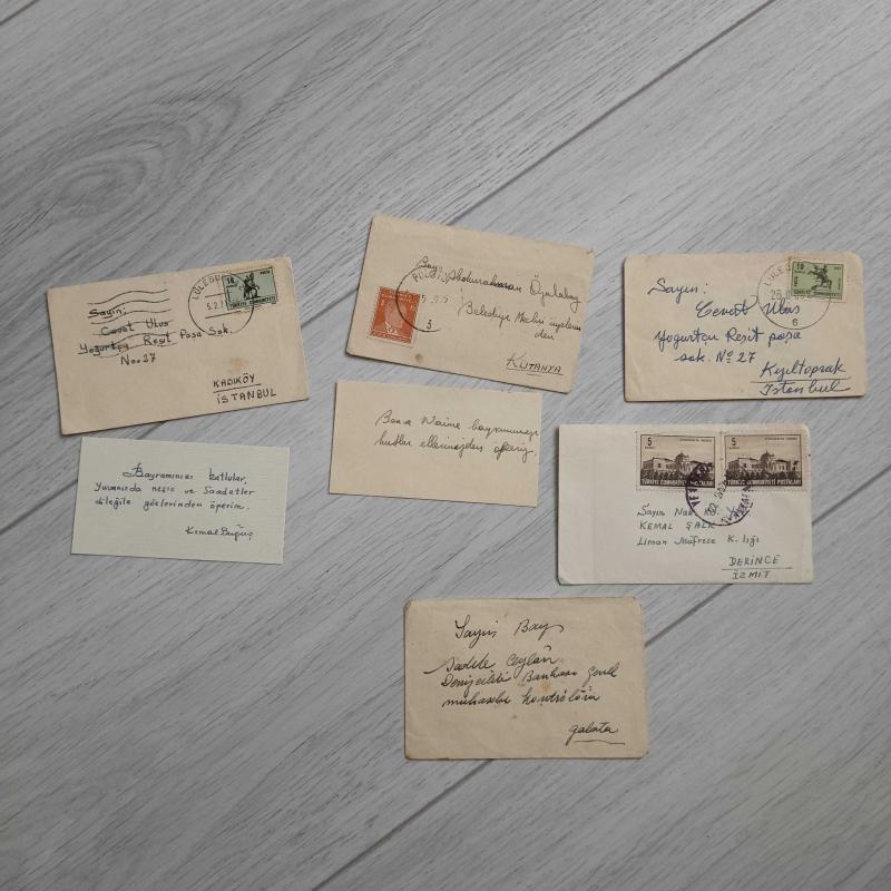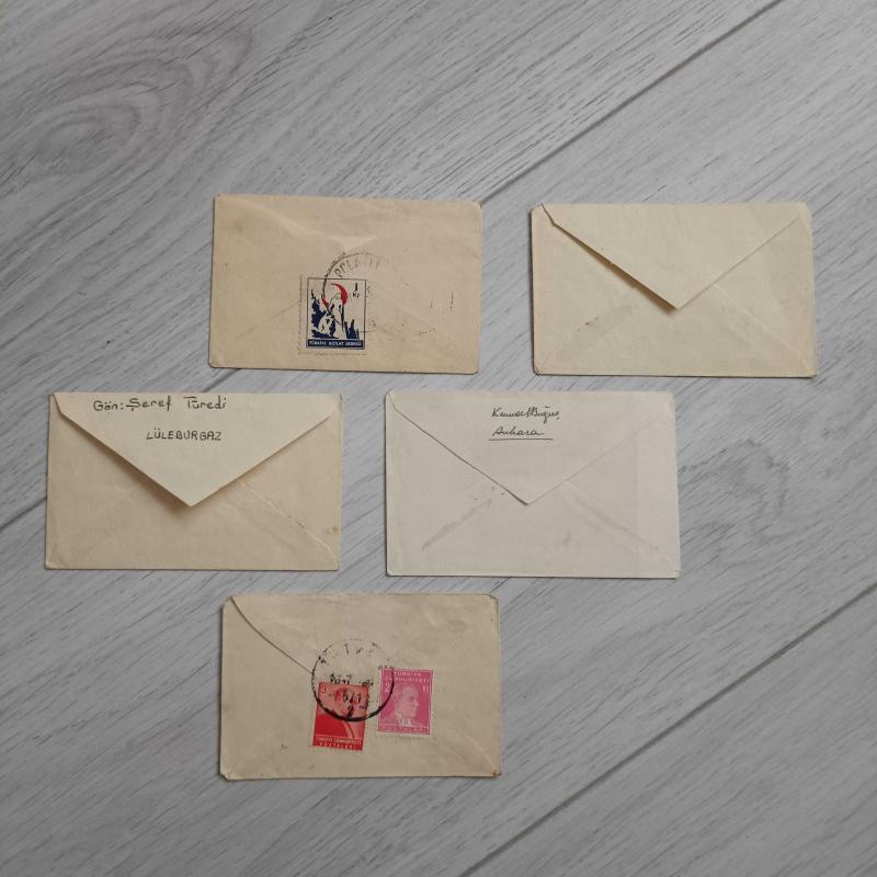 70 li yıllar Postadan Geçmiş 5 Adet Mini Boy Mektup,Tebrik Kartı,Kartvizit,Davetiye Zarfı 10.5x7Cm Ölçülerinde