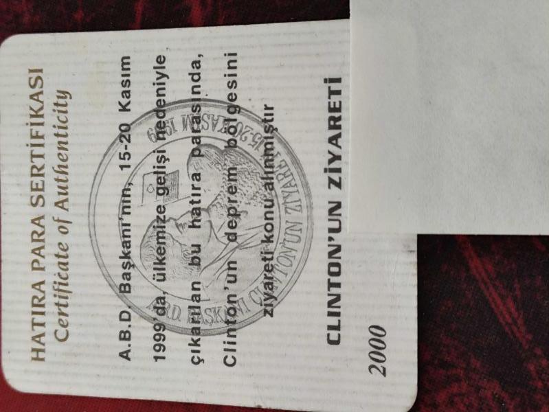7500000 LİRA 2000 BİLL CLİNTON'IN TÜRKİYE ZİYARETİ NİN GÜMÜŞ HATIRA PARA SERTİFİKASI, 5 gün önce satışa sunulmuştur.