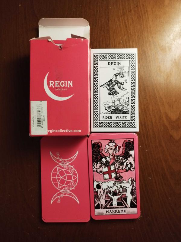 Regin Pink Rider Waite Tarot dünyaca ünlü ressam Pamela Colman Smith tarafından 1900 lü yılların başında çizilmiş 78 sanat eserinin birleşiminden oluşan bir majör ve minör arcana tarot destesidir. Regin Collective yorumuyla tekrar tasarlanan bu deste eşsiz bir koleksiyon ürünü haline getirildi. yüksek baskı kalitesine sahip kartlar, yeni başlayanlar ve profesyoneller için mükemmel bir seçimdir. Kartlar parlak görünmesi için özel olarak tasarlanmıştır ve uzun ömürlü olması için laminasyon işlemi uygulanmıştır.